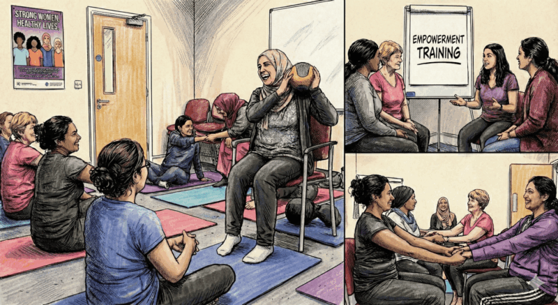 Das Empowerment-Training richtet sich an alle Frauen, insbesondere Migrant*innen, die etwas für ihre Gesundheit und ihren Körper tun wollen. Im Rahmen des Workshops können die Teilnehmerinnen ihren Selbstwert stärken, ihre Körperhaltung verbessern und einfache Entspannungsübungen erlernen.